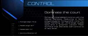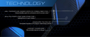 • Materials: Graphite-carbon face/frame; polypropylene honeycomb core.